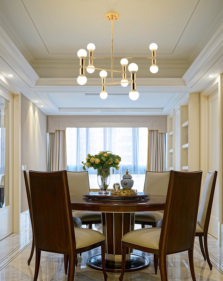 Đèn thả chùm là sản phẩm đèn trang trí nội thất cho không gian phòng khách, phòng ngủ đang được yêu thích nhất hiện nay. Ngoài tác dụng chiếu sáng thì các mẫu đèn chùm đẹp còn giúp tạo ra một không gian sang trọng, ấn tượng, đẳng cấp, thể hiện gu thẩm mỹ của gia chủ. Đèm chùm trang trí theo phong cách châu Âu hiện đại, tinh tế, bắt mắt  Chất liệu: khung sắt sơn tĩnh điện cao cấp Đèn đã bao gồm 12 bóng led 3W Thích hợp với mọi không gian Ứng dụng: nhà hàng, khách sạn, shop quần áo, phòng khách, phòng bếp, phòng ngủ, Kích thước sản phẩm: 673815(cm) Sản phẩm gồm 2 loại : Thân đen và thân vàng Thiết kế của đèn dễ lắp đặt, dễ sử dụng, giảm thiểu thời gian thi công. Bật/ Tắt tức thì, ánh sáng không rung, không nháy. Tuổi thọ đèn cao, thân thiện với môi trường, không chứa chất độc hại, có thể tái chế.