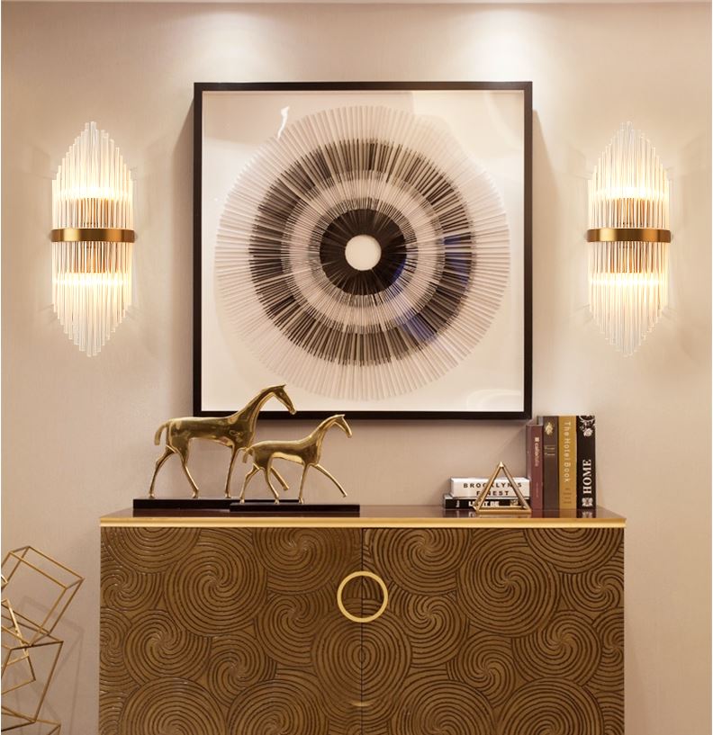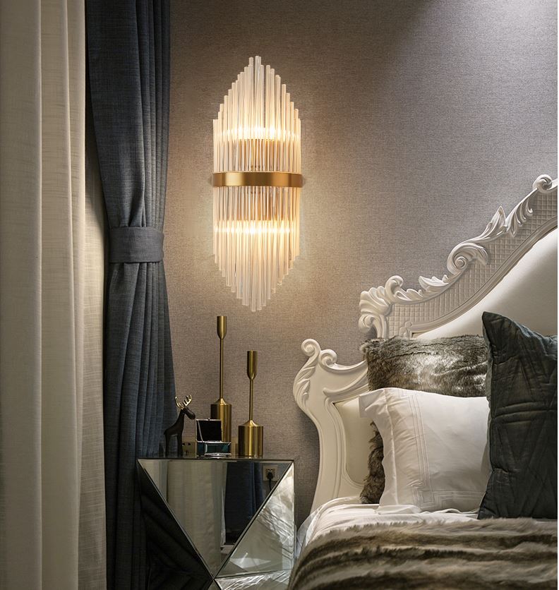 Đèn tường pha lê là loại đèn được thiết kế rất tinh xảo với sự kết nối hài hoà giữa các thanh pha lê với nhau và sự phản chiếu ánh sáng của đèn led