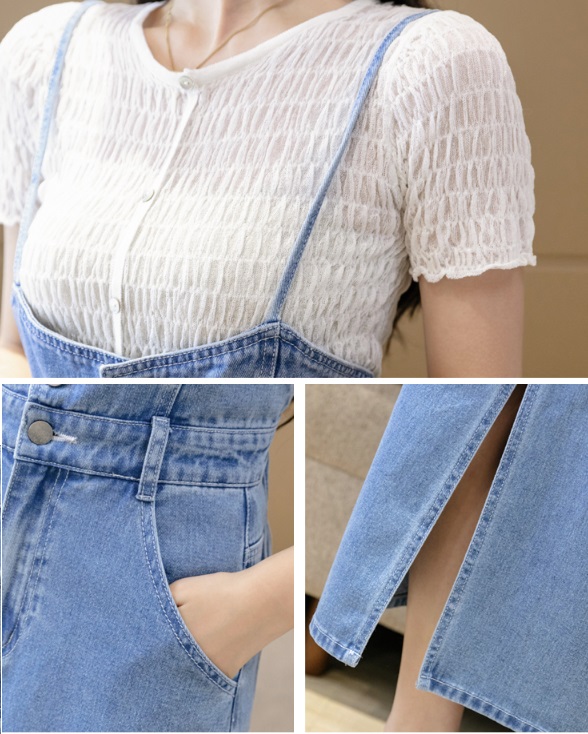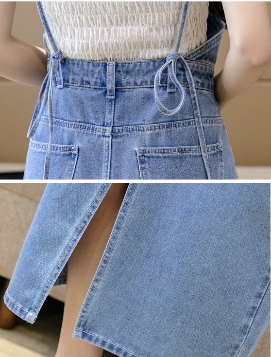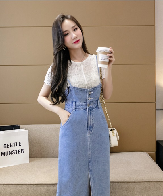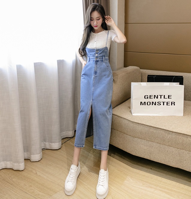 Mua tại Tiktok- [ĐẸP CHẤT] Đầm yếm jean dài cài nút xẻ tà dáng suông mềm mại năng động Màu xanh sáng wax bạc