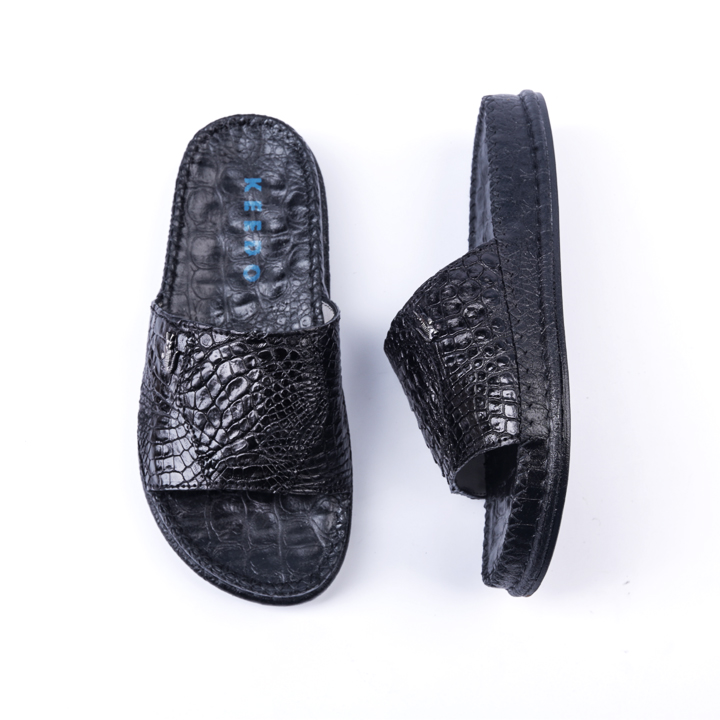 - Dép nam Huy Hoàng được làm từ chất liệu da cá sấu cao cấp nên càng sử dụng lâu bề mặt sẽ càng bóng đẹp tự nhiên. Da cá sấu mềm mại sẽ hạn