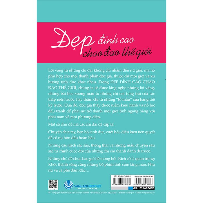 Lời vàng từ những chị đại không chỉ nhắm đến nữ giới, mà nó phù hợp cho mọi thành phần độc giả, thuộc đủ mọi giới và xu hướng tính dục khác nhau. Trong ĐẸP ĐỈNH CAO CHAO ĐAO THẾ GIỚI, chúng ta sẽ được lắng nghe những lời vàng, những bài học xương máu từ những chị em từng trải của các thập niên trước, hay thậm chí từ những “tổ mẫu” của hàng thế kỷ trước. Qua đó, độc giả thấy được niềm kiêu hãnh và nỗ lực đấu tranh để phái nữ trở thành một giới tính ngang hàng với phái nam về mọi phương diện.