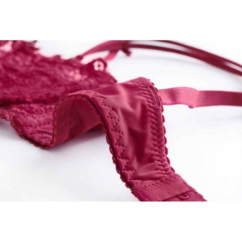 chất ren thoải mái thân thiện với làn da nhạy cảm nhất,kết hợp với vải cotton thoáng khí thoải mái với lớp lót áo sợi lưới thiết kế dây đeo vai rất phù hợp, sườn đàn hồi tốt, có 2 hàng và 3 nút khóa cài . Đáy quần có 2 lớp với lớp vải cotton khoáng khi hút ẩm tốt.