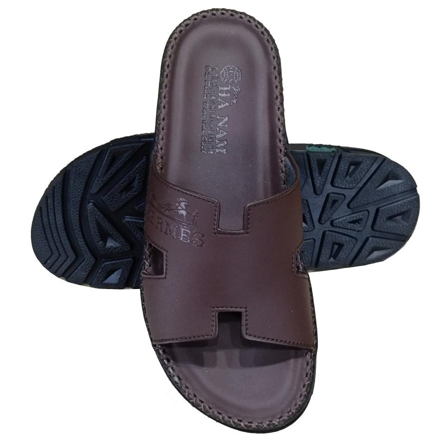DÉP NAM DA BÒ CAO CẤP - THƯƠNG HIỆU HÀ NAM - Da bò thật, bền đẹp: Dép nam được làm từ 100% da bò thật, mềm mại, thoáng khí, đảm bảo độ bền cao