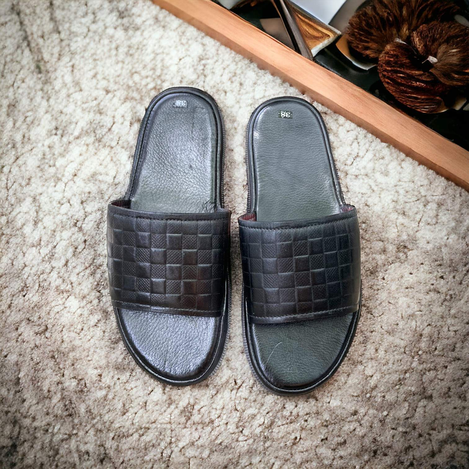 Dép Da Nam - Lịch Lãm & Thoải Mái Mỗi Ngày - Chất liệu cao cấp: Sử dụng da tổng hợp chất lượng, mềm mại, bền bỉ theo thời gian, mang lại cảm giác êm ái và thoáng khí cho bàn chân. - Thiết kế sang trọng: Tông màu đen lịch lãm, kết hợp với đường chỉ may tinh tế và logo kim loại nổi bật – tôn lên vẻ nam tính, trưởng thành. - Đế chống trượt: Đế EVA siêu nhẹ, độ đàn hồi tốt, kết hợp vân đế tăng độ ma sát – an toàn khi di chuyển trên nhiều bề mặt. - Form ôm chân: Thiết kế bản quai ngang rộng, ôm gọn bàn chân nhưng không gây bí bách, dễ xỏ vào – thích hợp cho người trung niên và người lớn tuổi. - Ứng dụng đa năng: Phù hợp sử dụng trong nhà, đi dạo phố, đến văn phòng hoặc các dịp gặp gỡ thân mật. Lựa chọn tuyệt vời cho quý ông yêu thích sự thoải mái, đơn giản nhưng vẫn giữ được nét tinh tế trong từng bước chân.