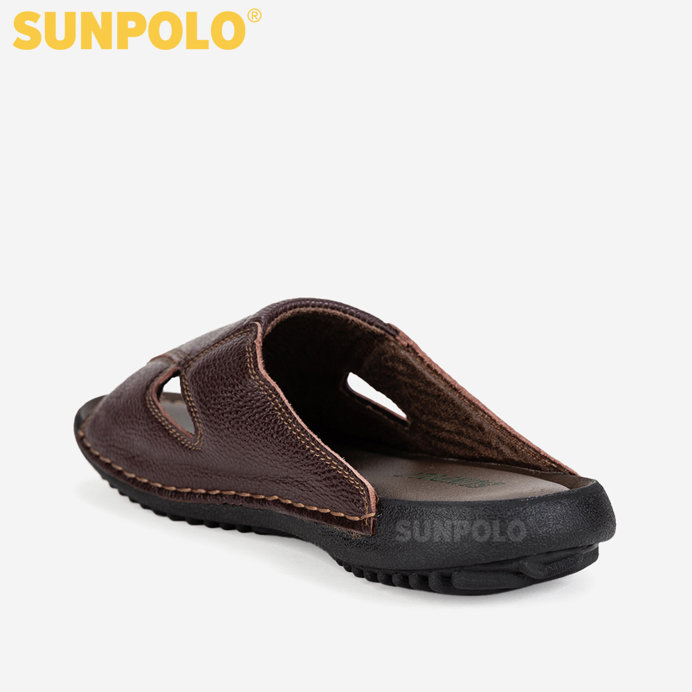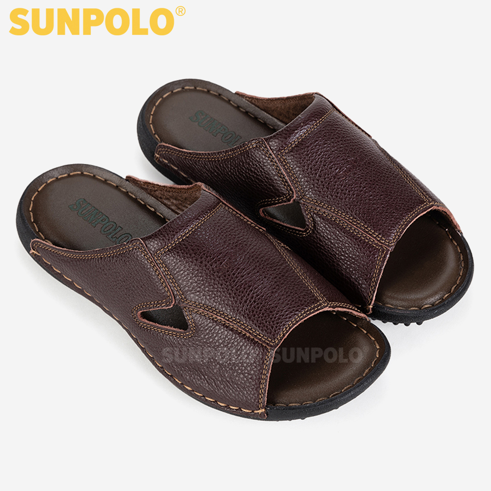 ✨Dép Nam Quai Ngang Da Bò SUNPOLO SUD20N - Nâu