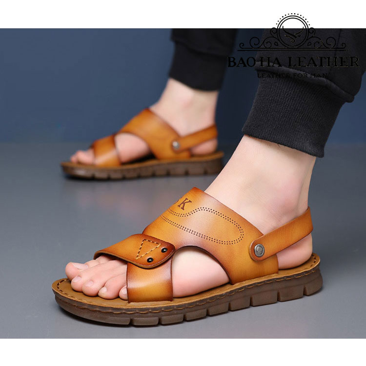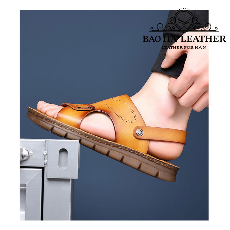 Dép nam quai ngang da bò thật cao cấp BHD8083 Dép quai hậu | Dép xăng đan êm chân, thoải mái khi đeo