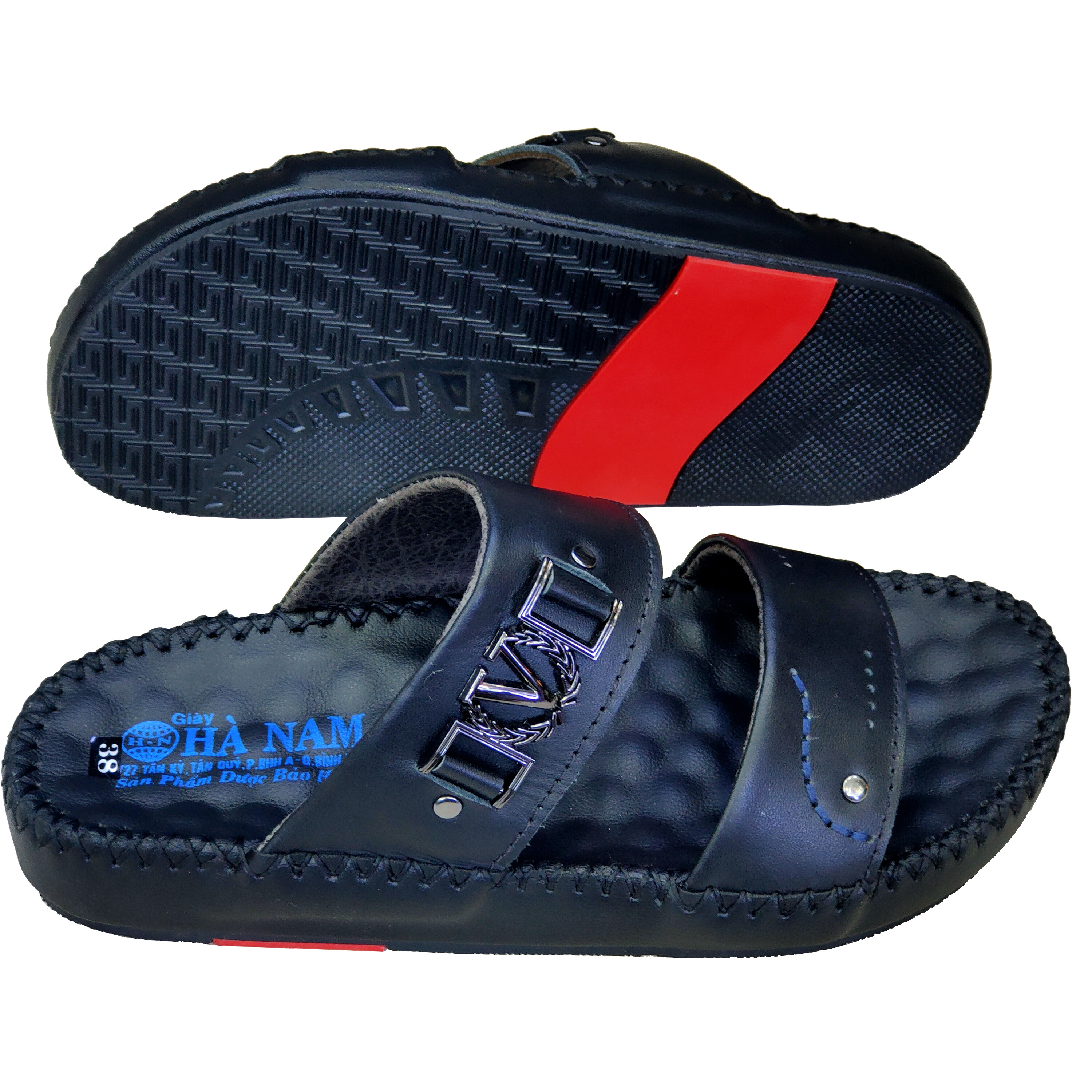 Dép lê chữ H, dép quai ngang da thật cỡ lớn 45 46 47 48 cho nam chân to. Big size leather slippers.