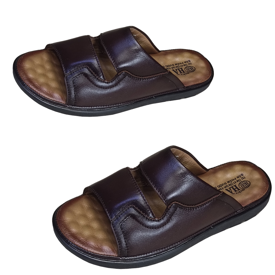 DÉP NAM DA BÒ CAO CẤP - THƯƠNG HIỆU HÀ NAM - Da bò thật, bền đẹp: Dép nam được làm từ 100% da bò thật, mềm mại, thoáng khí, đảm bảo độ bền cao