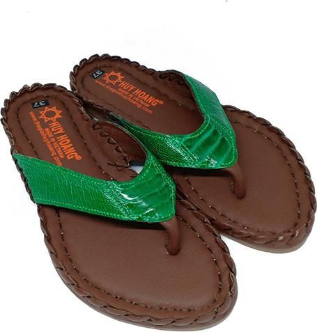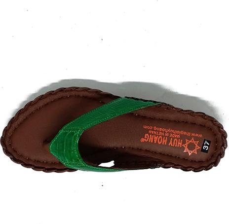 ✨Dép nữ Huy Hoàng da đà điểu màu xanh rêu HT7409