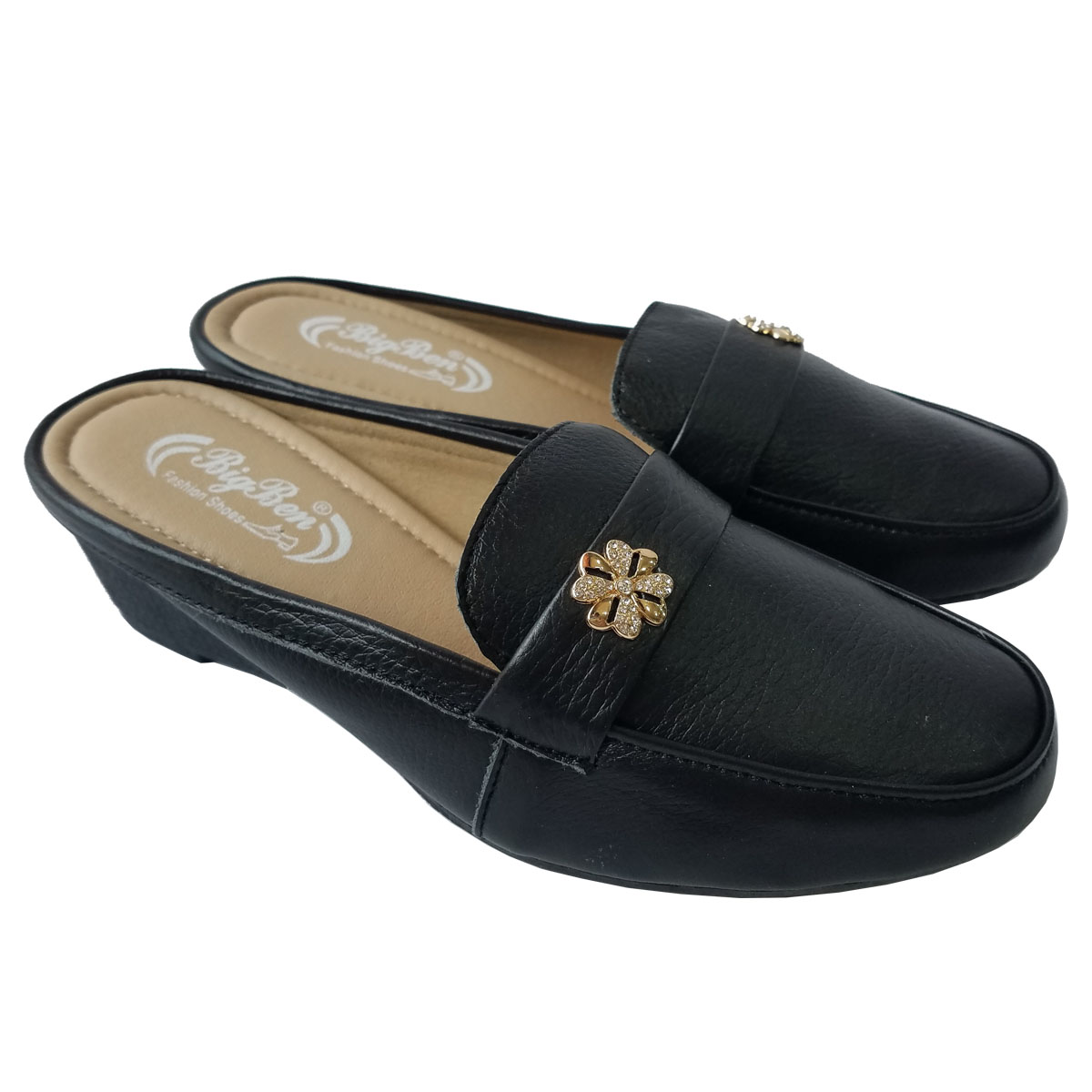 Giày Sục Nữ Giày Đế Xuồng Da Bò Thật Cực Mềm Gót Cao 5cm Evelynv 5P1816 (Đen)