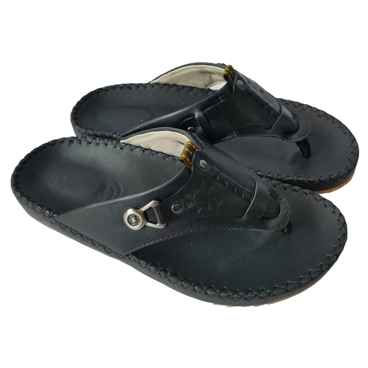 Dép da nam xỏ ngón màu đen - da bò thật 100%