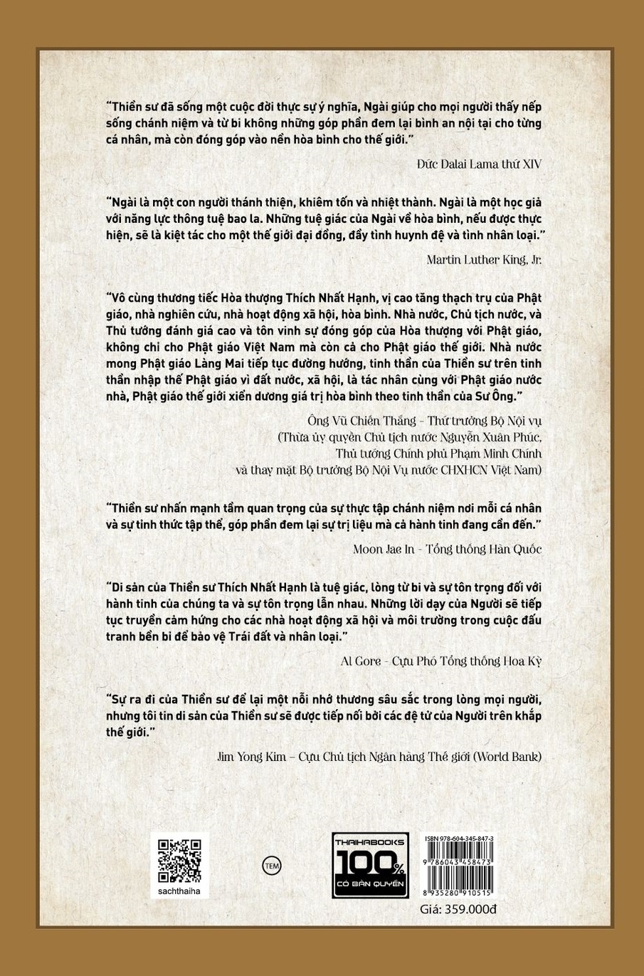 Đức Trưởng lão Hòa thượng - Thiền sư Thích Nhất Hạnh một bậc danh Tăng không chỉ ở Việt Nam mà còn trên thế giới. Trong suốt cuộc đời hành đạo và hoằng pháp của mình, Thiền sư đã mang lời dạy của đ...