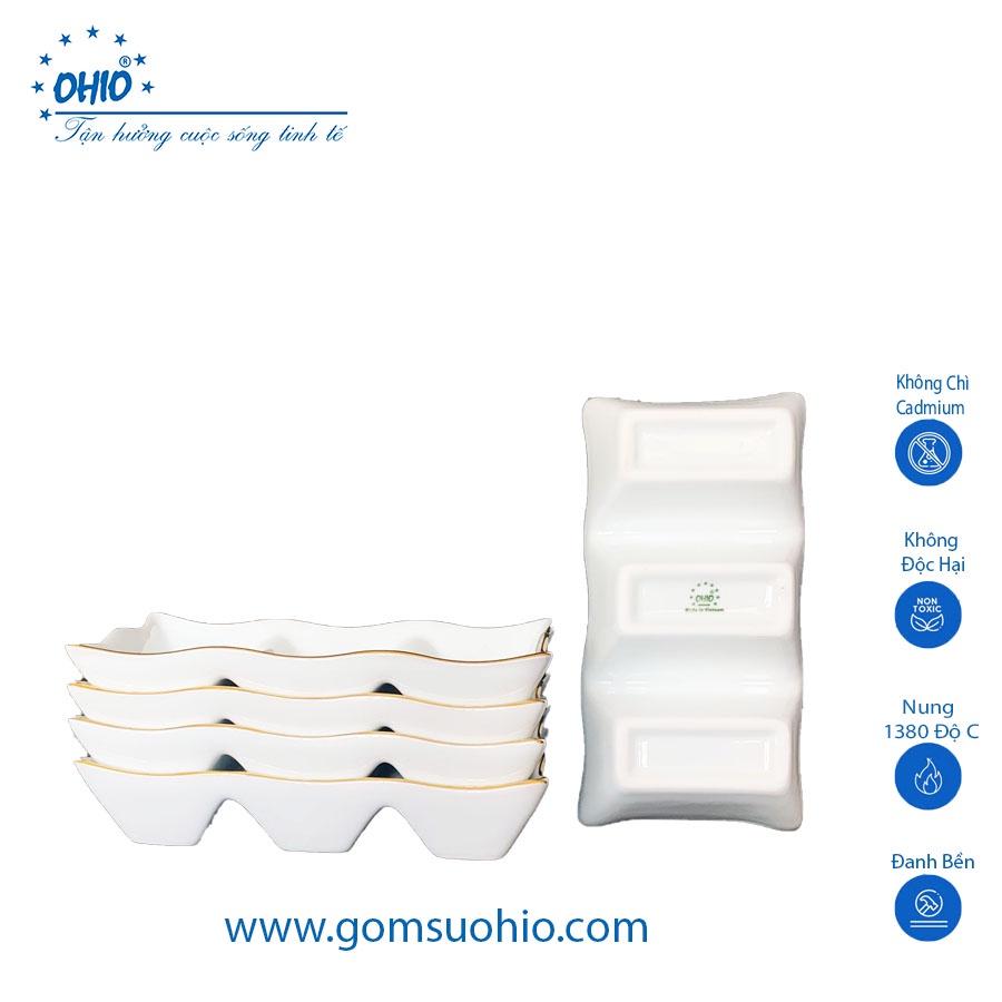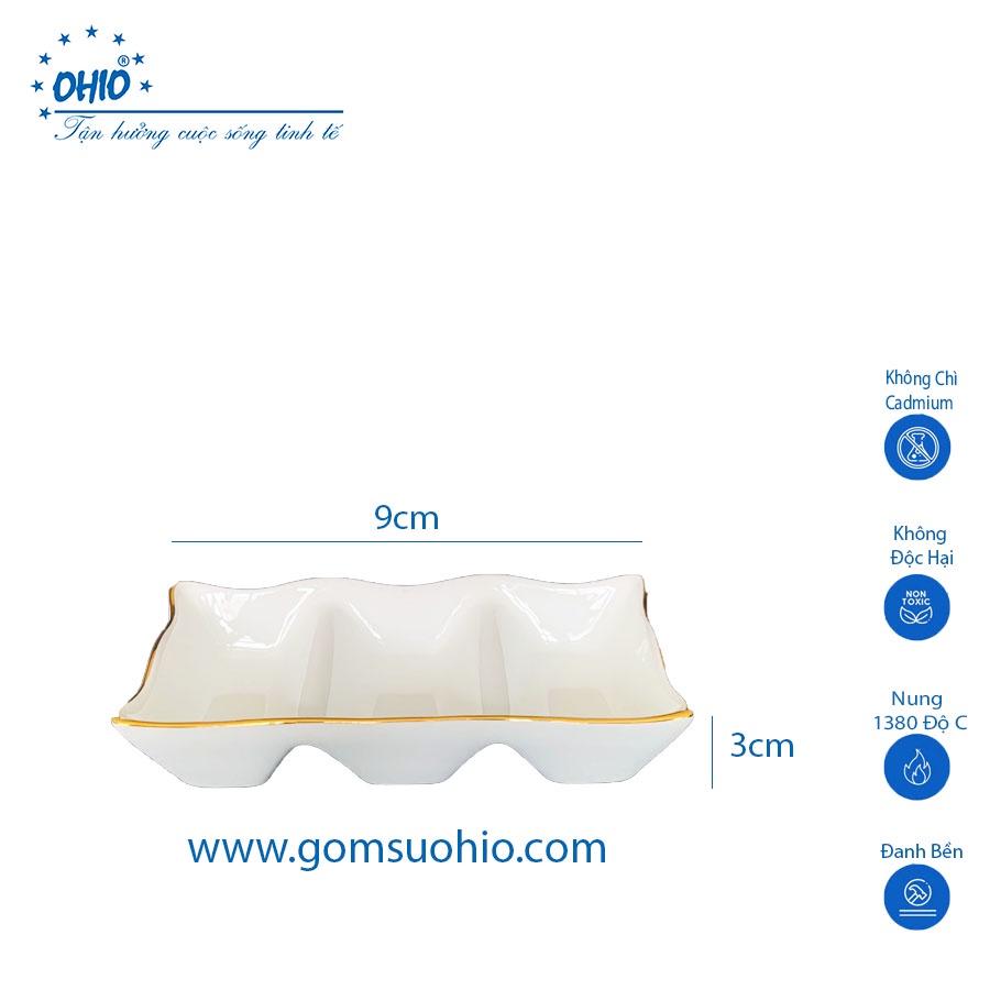 Đĩa 3 Ngăn Sứ Trắng Viền Kim OHIO Hàng Việt Nam Chất Lượng Cao.