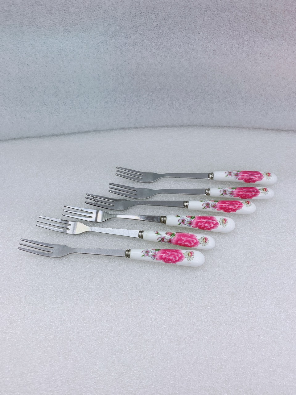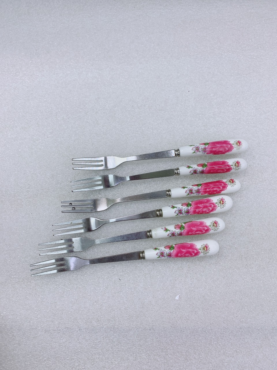 Dĩa ăn hoa quả trái cây bánh kem inox cán sứ hoa hồng