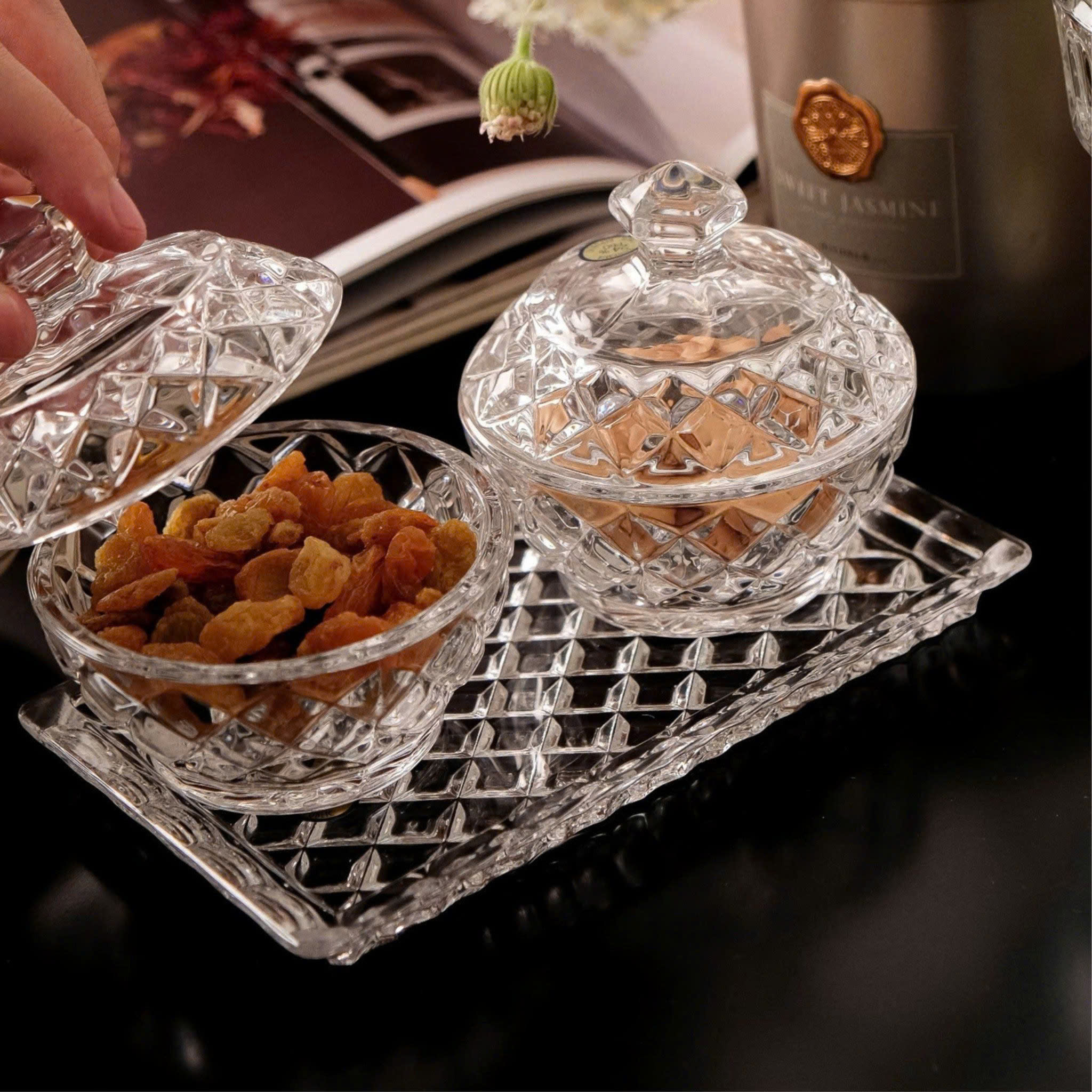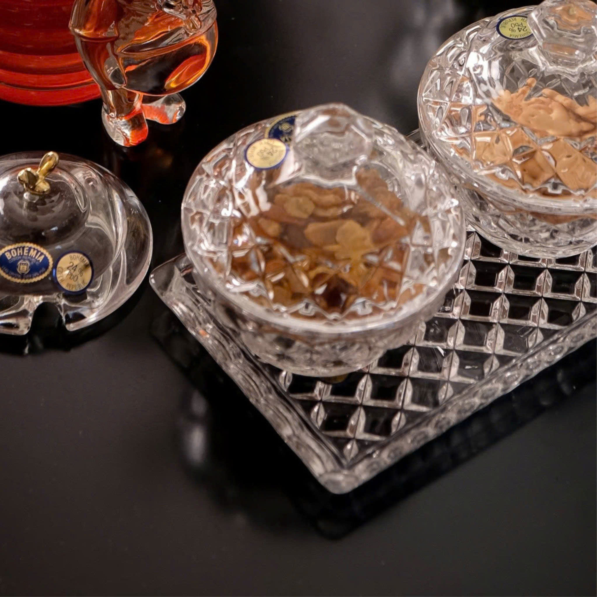 Bộ pha lê gồm 2 thố 10cm và đĩa 19cm Bohemia - made in Czech