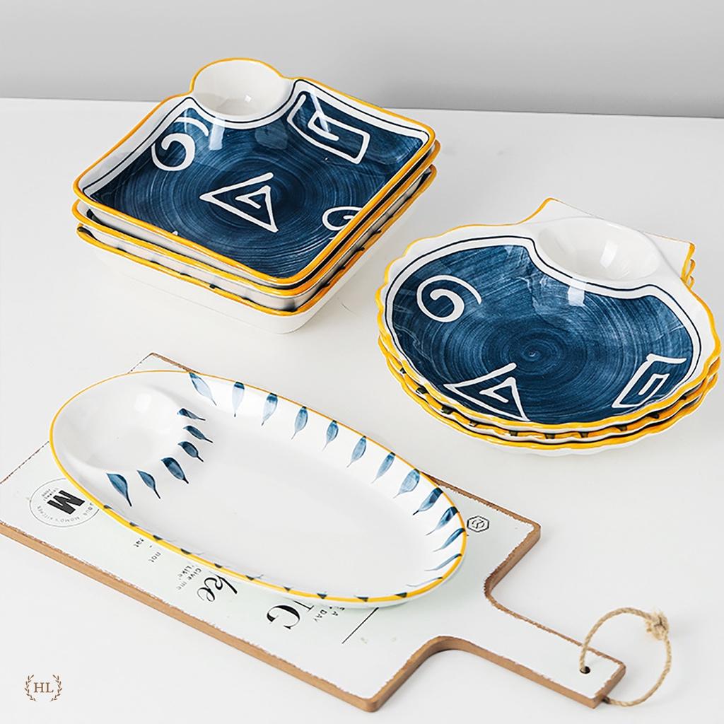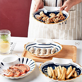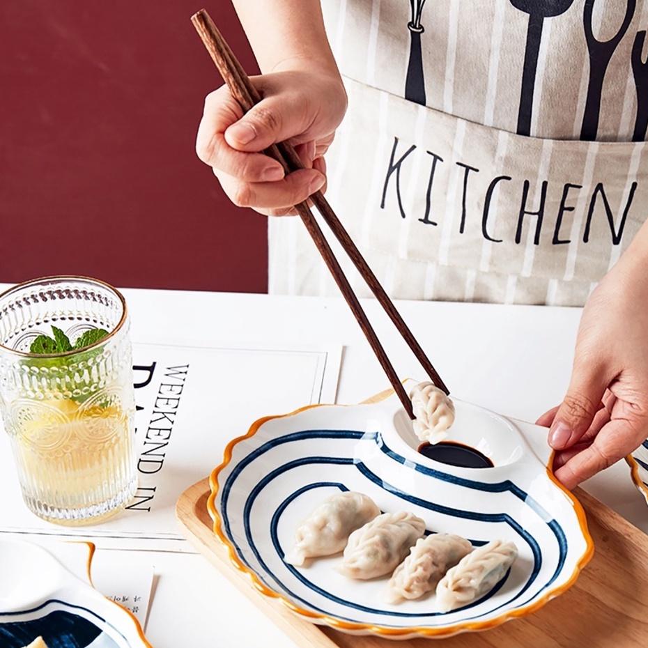 ✨Đĩa Sò Có Ngăn Chấm Nhật Bản | Đĩa sò cao cấp 2022 có chia ngăn đựng gia vị Phong Cách Decor Retro 4 Hoa Văn