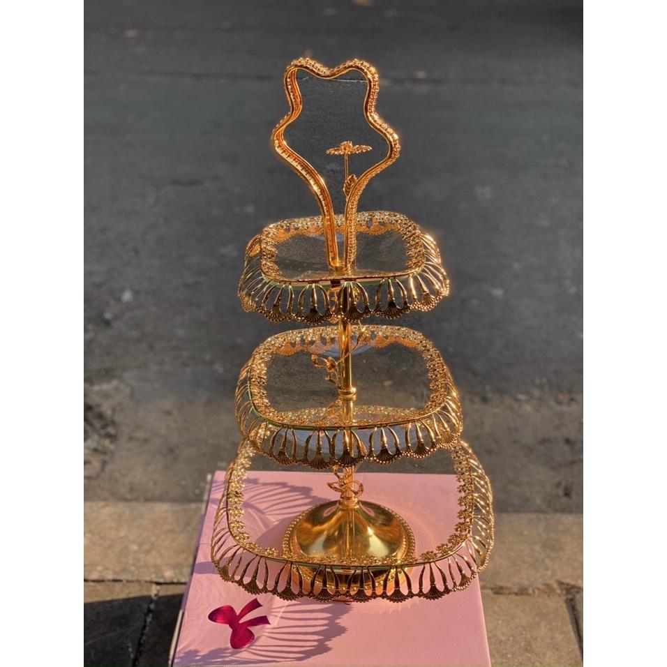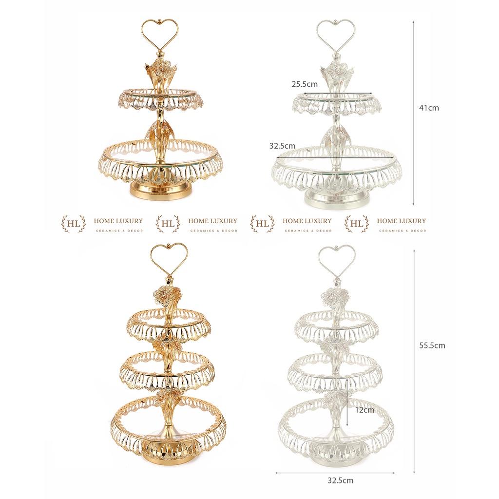 ✨Đĩa Thủy Tinh Cường Lực 2 - 3 Tầng | Kệ Thủy Tinh Hoàng Kim 2022 Mạ Vàng Cao Cấp Phong Cách Vintage