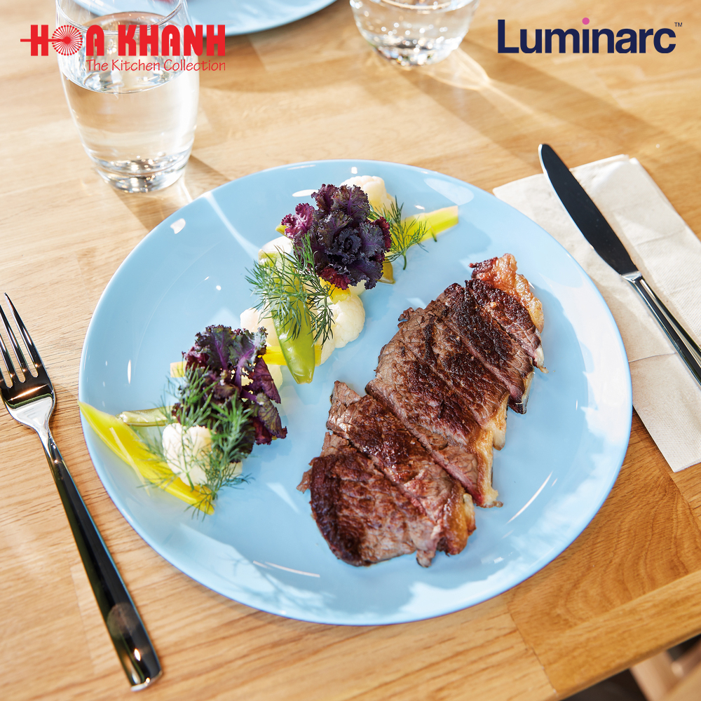 Một điểm nhấn đặc biệt trong bộ sưu tập chén dĩa bàn ăn của L, chính là dòng sản phẩm chén dĩa thủy tinh có màu - Diwali Light Blue. Vẫn xuất phát từ thủy tinh gốm Opal, màu sắc đã được các nhà sản xuất pha trộn một cách khéo léo từ những giọt màu organic, thân thiện với sức khỏe người tiêu dùng. Mang lại tính thẩm mĩ cao khi phối hợp tone màu xanh sáng hiện đại, thanh lịch và tinh tế - phong cách nổi bật đến từ Pháp. Ngoài ra, cảm giác dễ chịu từ màu xanh sáng mang lại cho không gian bàn ăn sự thoải mái nhưng không kém phần nổi bật.