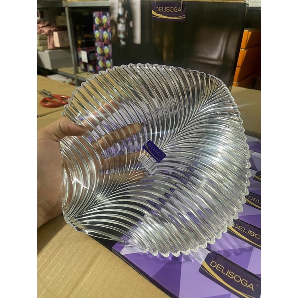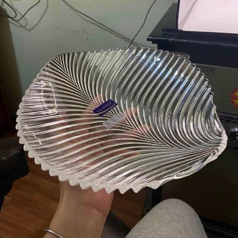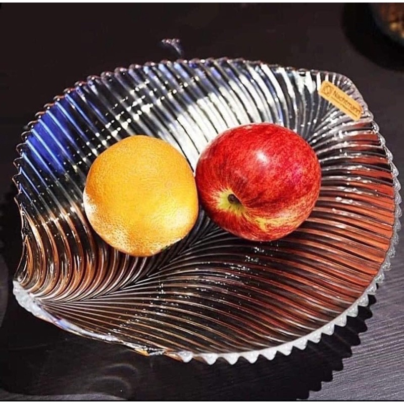 Đĩa Thuỷ Tinh Pha Lê Hình Chiếc Lá kt 24x24cm Đựng Hoa Quả Bánh Kẹo - HÀNG CHÍNH HÃNG MINIIN