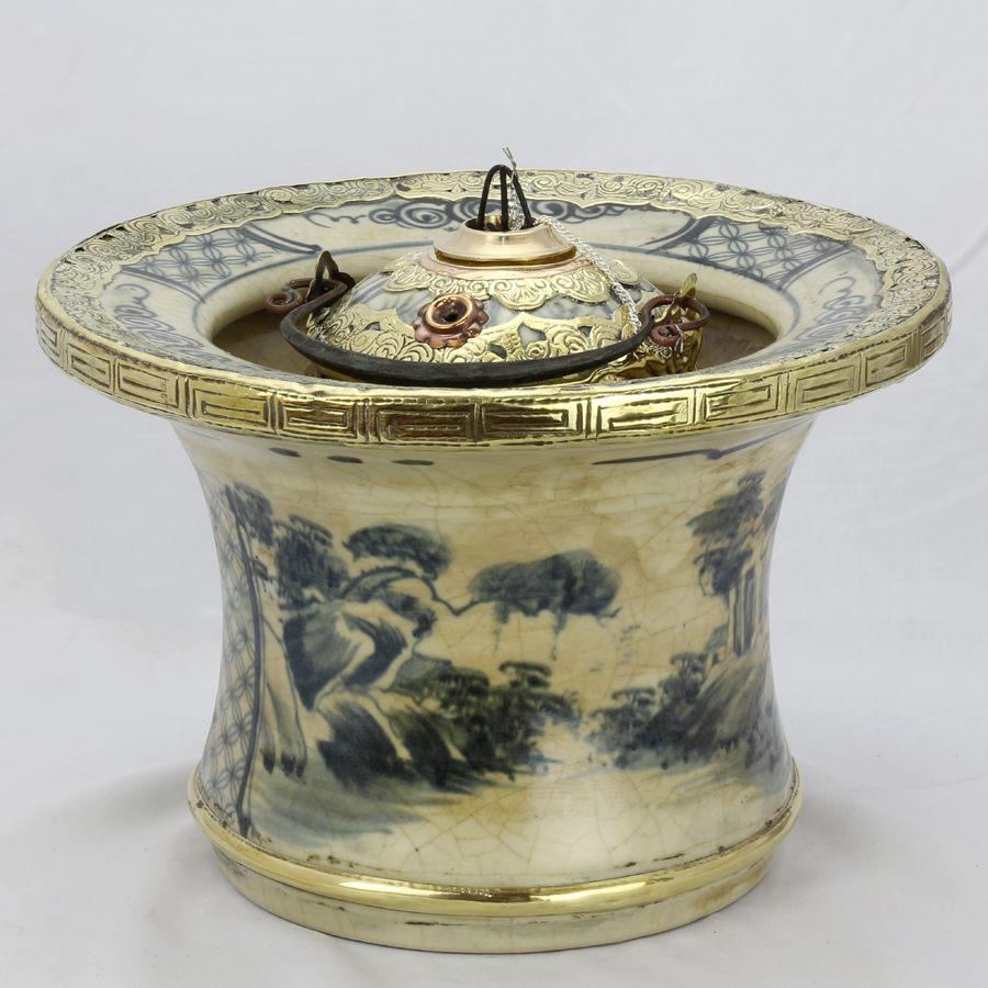 Điếu bát men rạn bọc đồng vẽ Sơn Thủy dáng cao chính hãng gốm sứ Bát Tràng - Điếu bát men rạn bọc đồng cao cấp, kiểu dáng độc đáo, được đúc bằng đồng nguyên