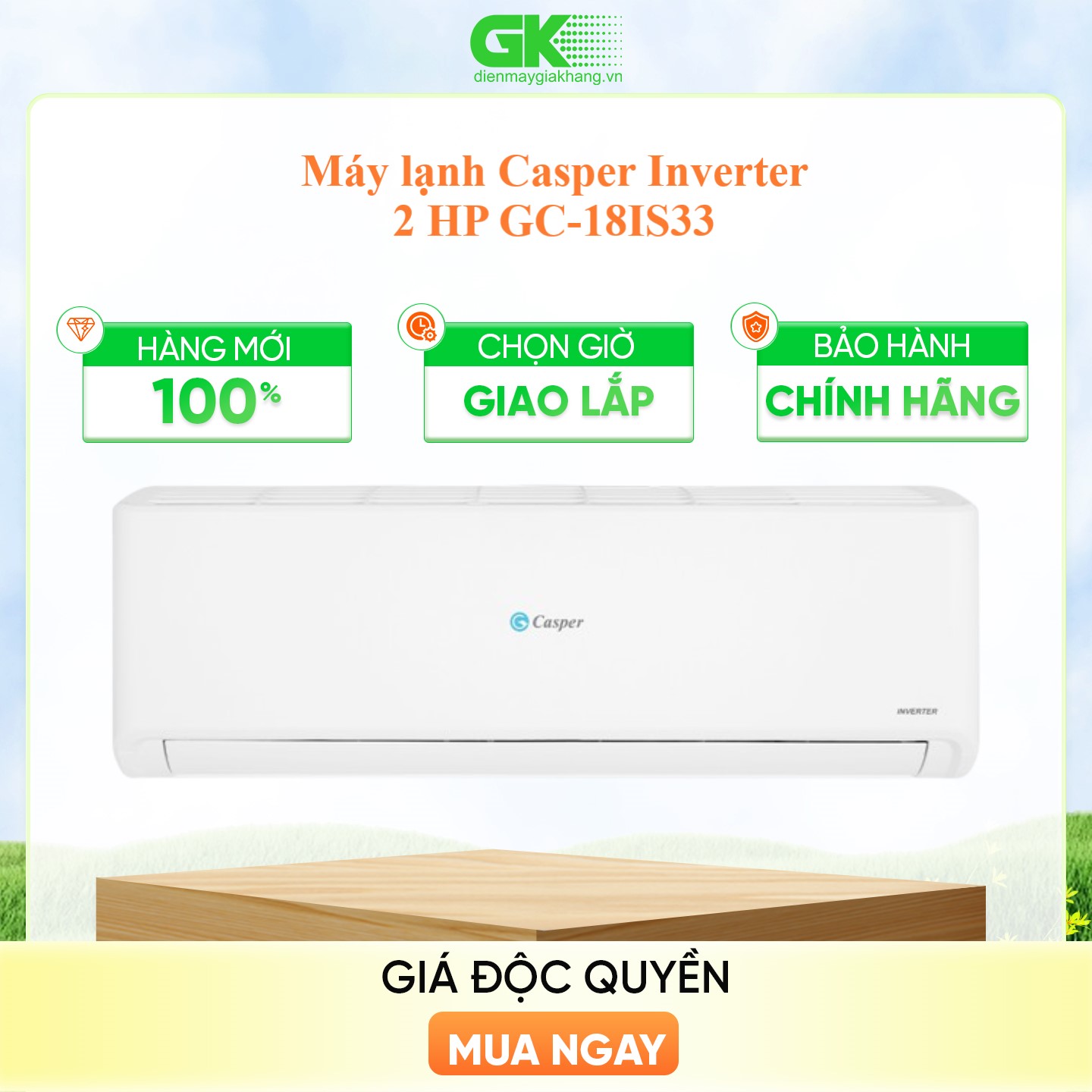 Máy lạnh Casper Inverter 2 HP GC-18IS33 có thiết kế bên ngoài tối giản với gam màu trắng trang nhã, dạng hình chữ nhật thon gọn, không chiếm nhiều diện tích và dễ dàng kết hợp với nội thất công trình.