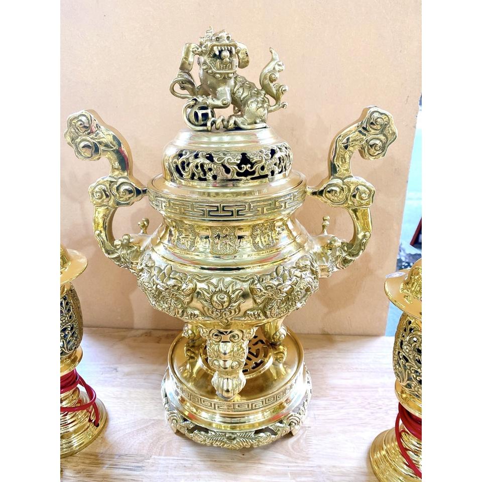 Bộ Ngũ Sự Bằng Đồng Vàng Cao 45Cm Phù Hợp Bàn Thờ Chung Cư Hay Tủ Thờ Nhỏ | Xưởng Đồng Đông Sơn
