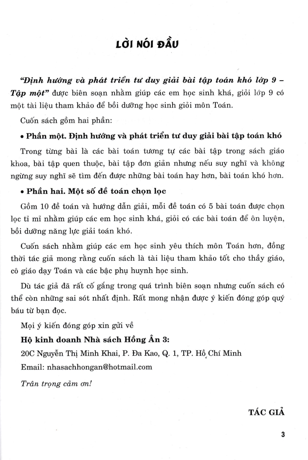 Định Hướng Và Phát Triển Tư Duy Giải Bài Tập Toán Khó Lớp 9 được biên soạn nhằm giúp các em học sinh khá, giỏi lớp 9 có một tài liệu tham khảo để bồi dưỡng học sinh giỏi môn Toán.