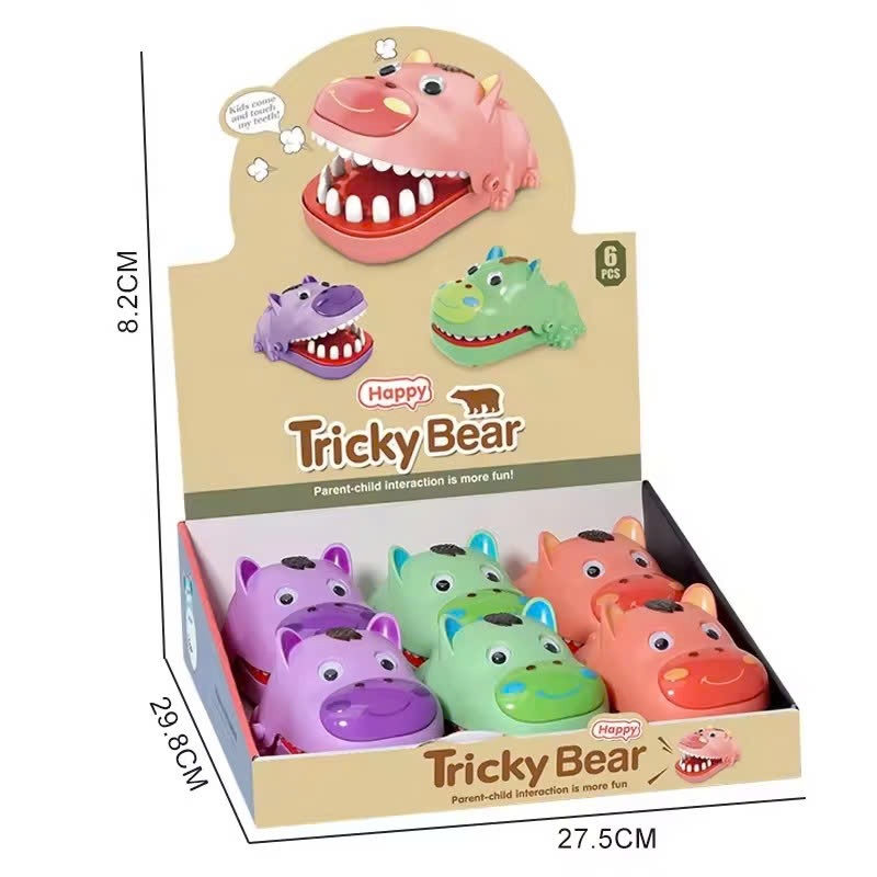 Trò chơi “Cá sấu sập răng” phiên bản cỡ lớn, thiết kế hàm cá sấu to và sinh động hơn, tăng thêm phần kịch tính. Luật chơi: người chơi lần lượt ấn vào từng