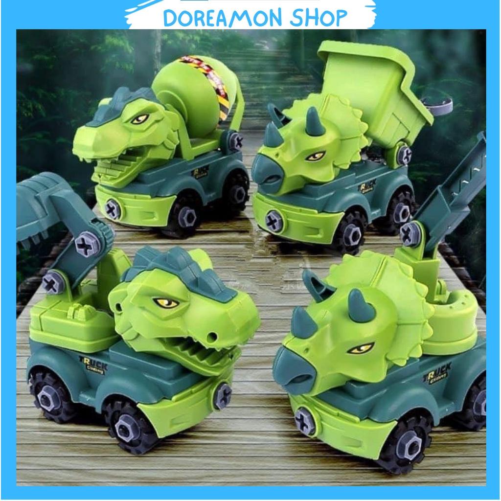 Mua tại TiktokĐồ chơi bộ lắp ráp 4 xe khủng long kèm Tovit, Mô hình khủng long tự lắp ghép. Doreamon Shop