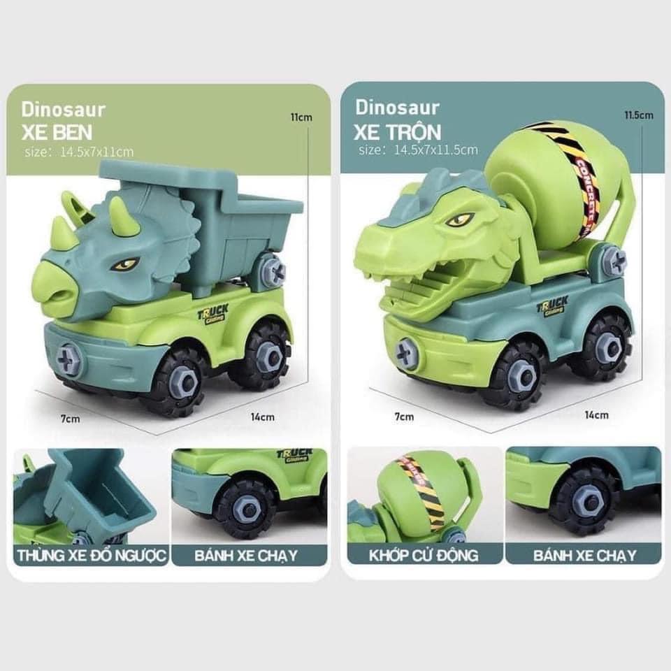 Set 4 xe lắp ghép khủng long công trường, xe ô tô đồ chơi tặng kèm tovit, cờ lê cho bé