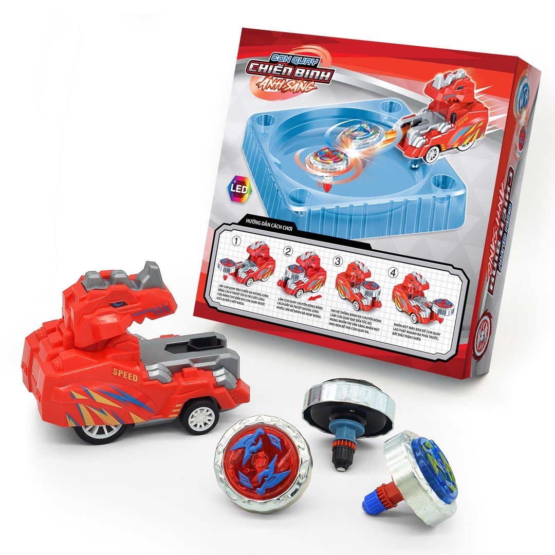 Con quay chiến binh ánh sáng : Khủng long tranh tài, DK 81128 Đồ chơi con quay được lấy ý tưởng từ trò chơi dân gian từ xa xưa đã đi vào ký ức tuổi