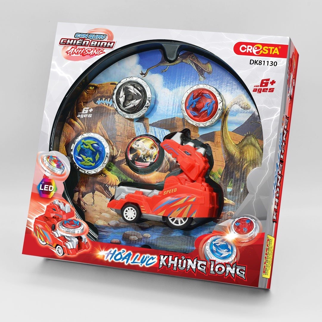 Con quay chiến binh ánh sáng :Hỏa lực Khủng long, DK 81130 Đồ chơi con quay được lấy ý tưởng từ trò chơi dân gian từ xa xưa đã đi vào ký ức tuổi thơ của