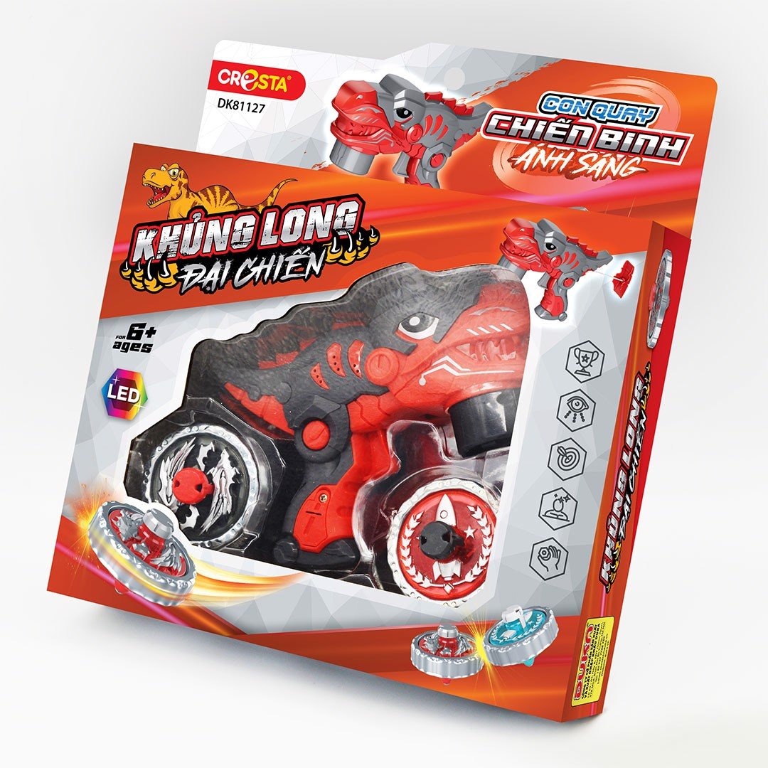 Con quay chiến binh ánh sáng : Khủng long tranh tài, DK 81128 Đồ chơi con quay được lấy ý tưởng từ trò chơi dân gian từ xa xưa đã đi vào ký ức tuổi