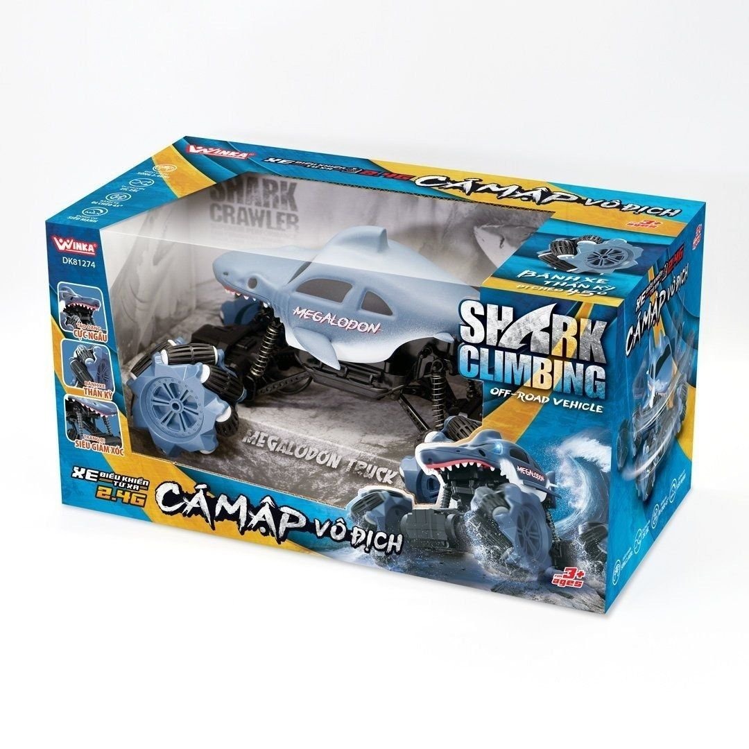 XE ĐIỀU KHIỂN TỪ XA 2.4G - CÁ MẬP VÔ ĐỊCH Đồ chơi xe điều khiển được thiết kế với mô hình chú cá mập ngộ nghĩnh, chất liệu hợp kim độ bền cao, bánh