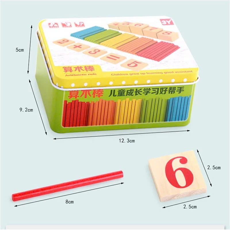 Bộ Que Tính Gỗ Con Voi Hộp Sắt - Đồ Chơi Giáo Dục Toán Học