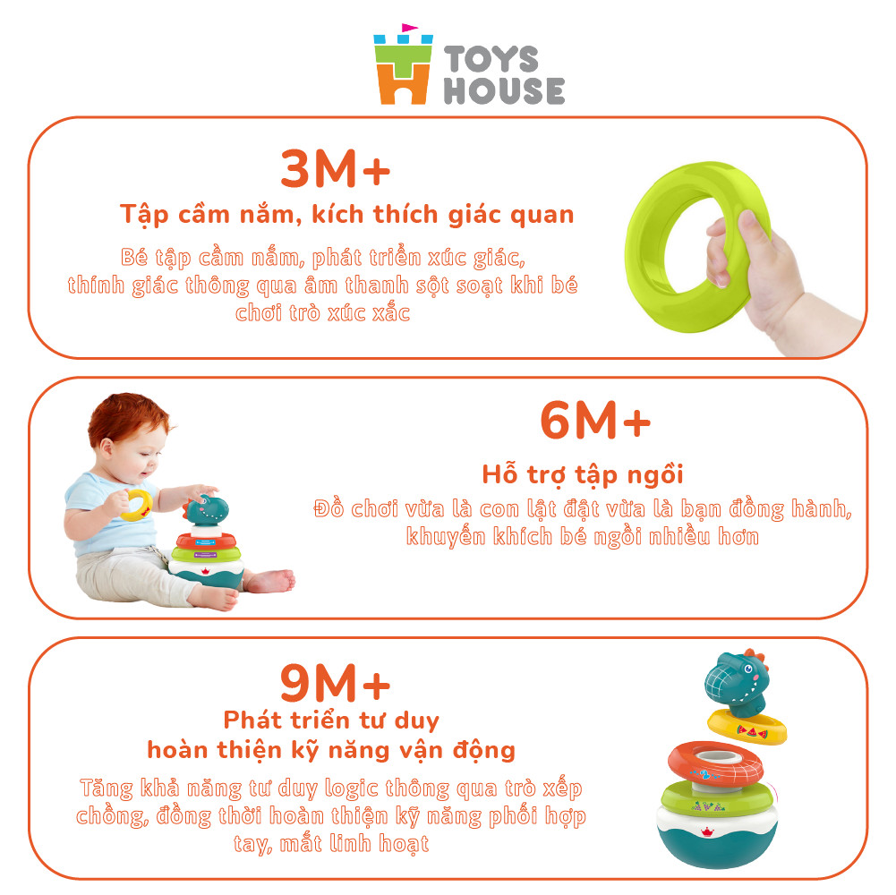 Đồ chơi Lật đật kết hợp vòng xúc xắc xếp tháp HE0298 ToysHouse phù hợp cho bé từ 3-6 tháng tuổi trở lên với nhiều cách chơi khác nhau giúp bé phát triển vận