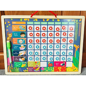 - 1 bộ gồm: 1 bảng có dây treo, 1 bút viết bảng, sticker và thẻ dán hoạt động thường ngày.