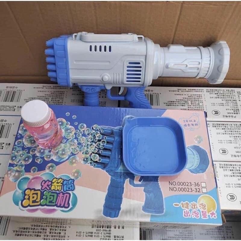 - Súng bắn bong bóng 32 nòng chạy bằng pin: súng siêu cấp rất thú vị, với thiết kế chân thực, màu sắc tươi tắn, chiếc súng thổi bong bóng chỉ cần chạm vào chất dung dịch xà phòng và bóp cò, cánh quạt bên trong sẽ hoạt động và thổi ra rất rất nhiều bong bóng.