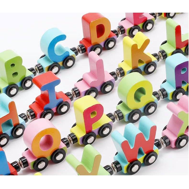 Đồ Chơi Giáo Dục Sớm Đoàn Tàu Nam Châm Chở Chữ Bằng Gỗ Cho Bé