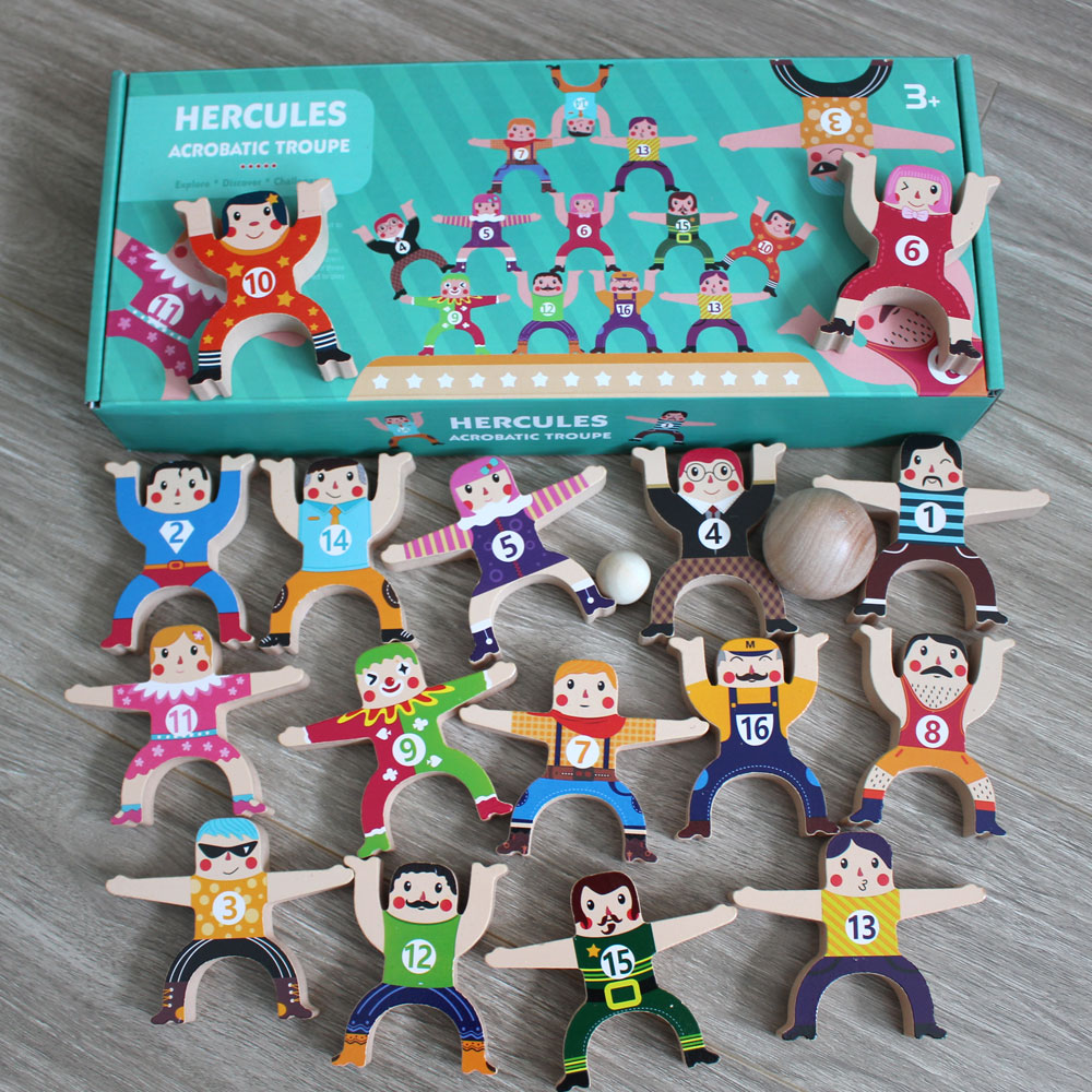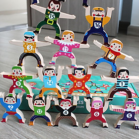 Đồ chơi trẻ em Bộ Lắp Ráp Thăng Bằng Giúp Bé Khả Năng Tập Trung, Khéo léo Bộ đồ chơi bao gồm 16 chú hề gỗ làm xiếc cao cấp 02 quả bóng lớn và