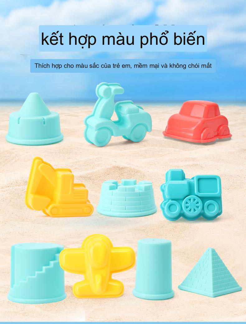 - Bộ đồ chơi xúc cát cho bé phối hợp tay và nhận thức màu sắc của trẻ em, thể hiện đa chức năng của nó.