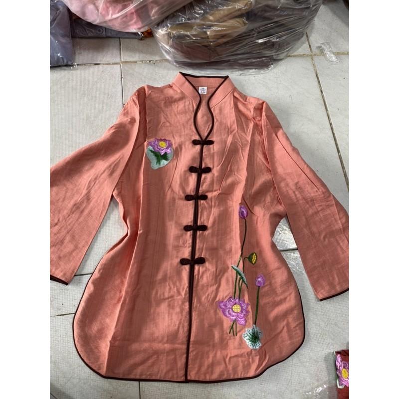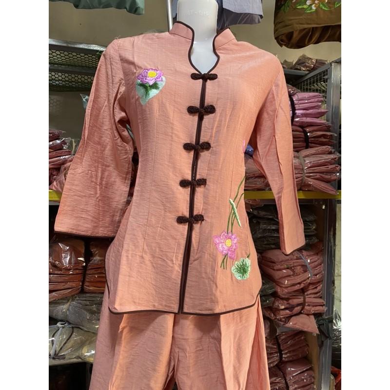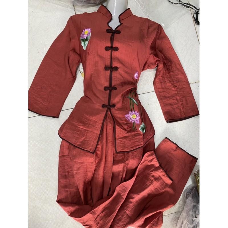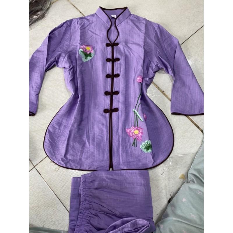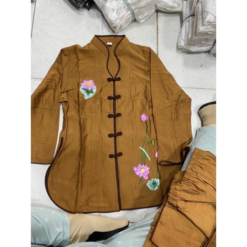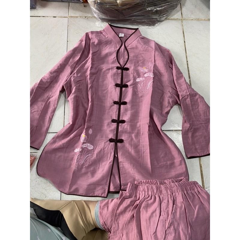 quần áo Phật tử cổ tàu cài chéo - đồ lam đi chùa Sen Hồng - set Phật tử nữ đẹp 0898553583