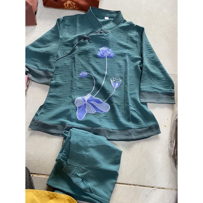 ✨Đồ Lam Đi Chùa # Sẫm Phối 2Nút # Đồ Bộ Nữ #Quần Áo Nữ