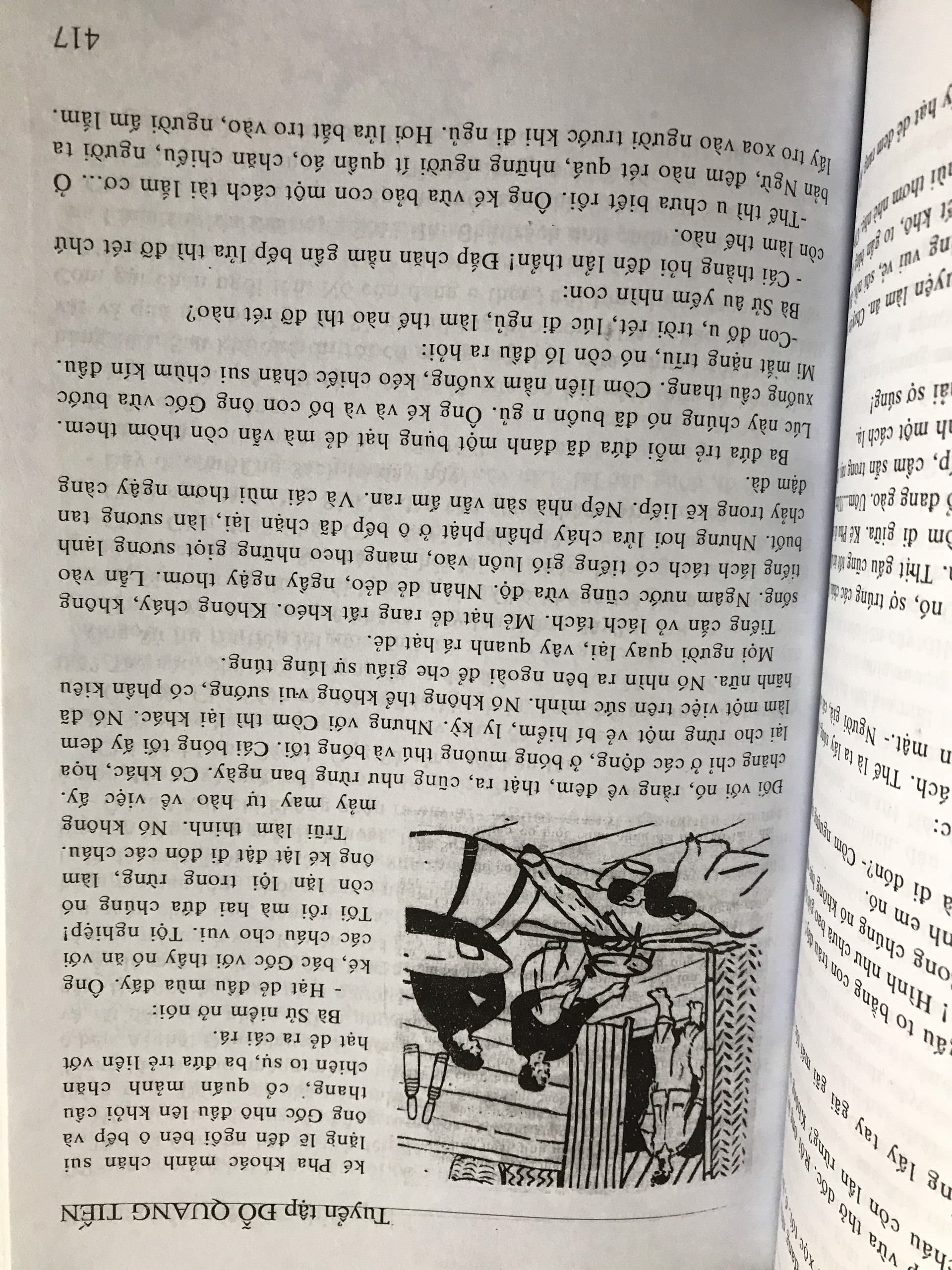 Khoảng đầu những năm 1960, Việt Nam nở rộ tiểu thuyết. Vỡ bờ của Nguyễn Đình Thi, Phá vây của Phù Thăng, Trên mảnh đất này của Hoàng Văn Bổn, Vào đời của Hà Minh Tuân, và Làng tề của Đỗ Quang Tiến… Cứ có cuốn sách nào mới, là bố tôi mượn về (thậm chí có những cuốn chưa kịp vào sổ). Tôi vừa đọc sách của Thư viện Đại học Tổng hợp, vừa đọc sách thiếu nhi (phần thưởng cho các điểm khá giỏi ở trường). Cho nên tôi đọc Làng tề, rồi đọc luôn cả Đàn trâu cũng của Đỗ Quang Tiến (in năm 1962, NXB Kim Đồng).