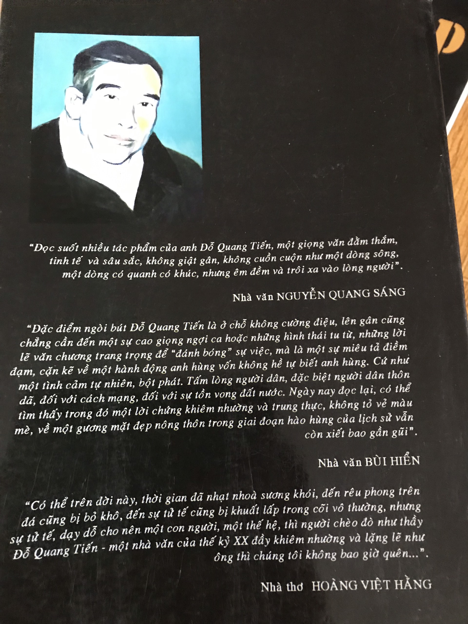 Đến khi cầm trong tay Tuyển tập Đỗ Quang Tuyến mới “ngã ngửa” ra rằng Đàn trâu cũng do ông viết. Cũng với lối quan sát tinh tế, những trang viết về một làng tề đồng bằng Bắc bộ, về rừng rậm Cao Bằng - Lạng Sơn… sao mà sống động. Tôi nhớ văn Đỗ Quang Tiến chính là ở chỗ qua những trang văn của ông, rất có không khí lịch sử, tái hiện lại được lịch sử như nó vốn có.