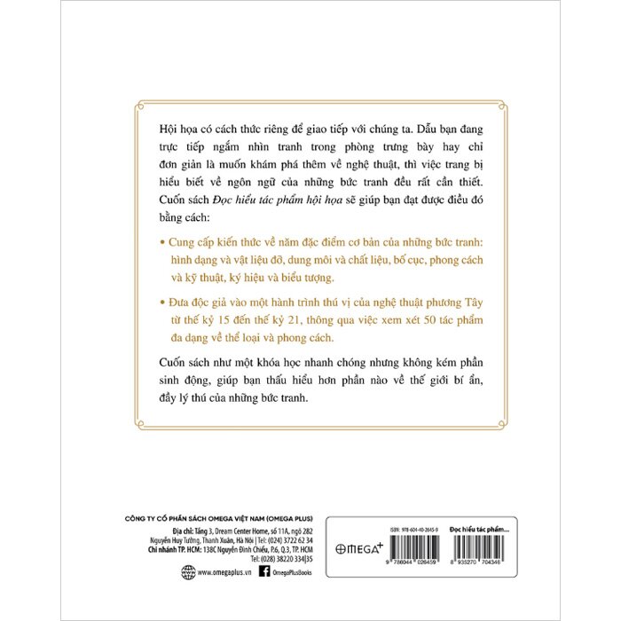 Đọc Hiểu Tác Phẩm Hội Họa - Khám Phá Ngôn Ngữ Biểu Đạt Cơ Bản Nhất Của Hội Họa Đúng với tính chất của một khóa học nhanh hay một “dẫn nhập” (crash course), cuốn sách “Đọc hiểu tác phẩm hội họa” đóng vai trò như một khóa học nhanh chóng, nhưng cũng không kém phần sinh động, cung cấp hiểu biết cơ bản về hội họa phương Tây, trong dung lượng tương đối nhỏ. Độ cô đọng và súc tích cao của văn phong trong cuốn sách giúp độc giả nhanh chóng nắm được những nội dung trọng tâm nhất.
