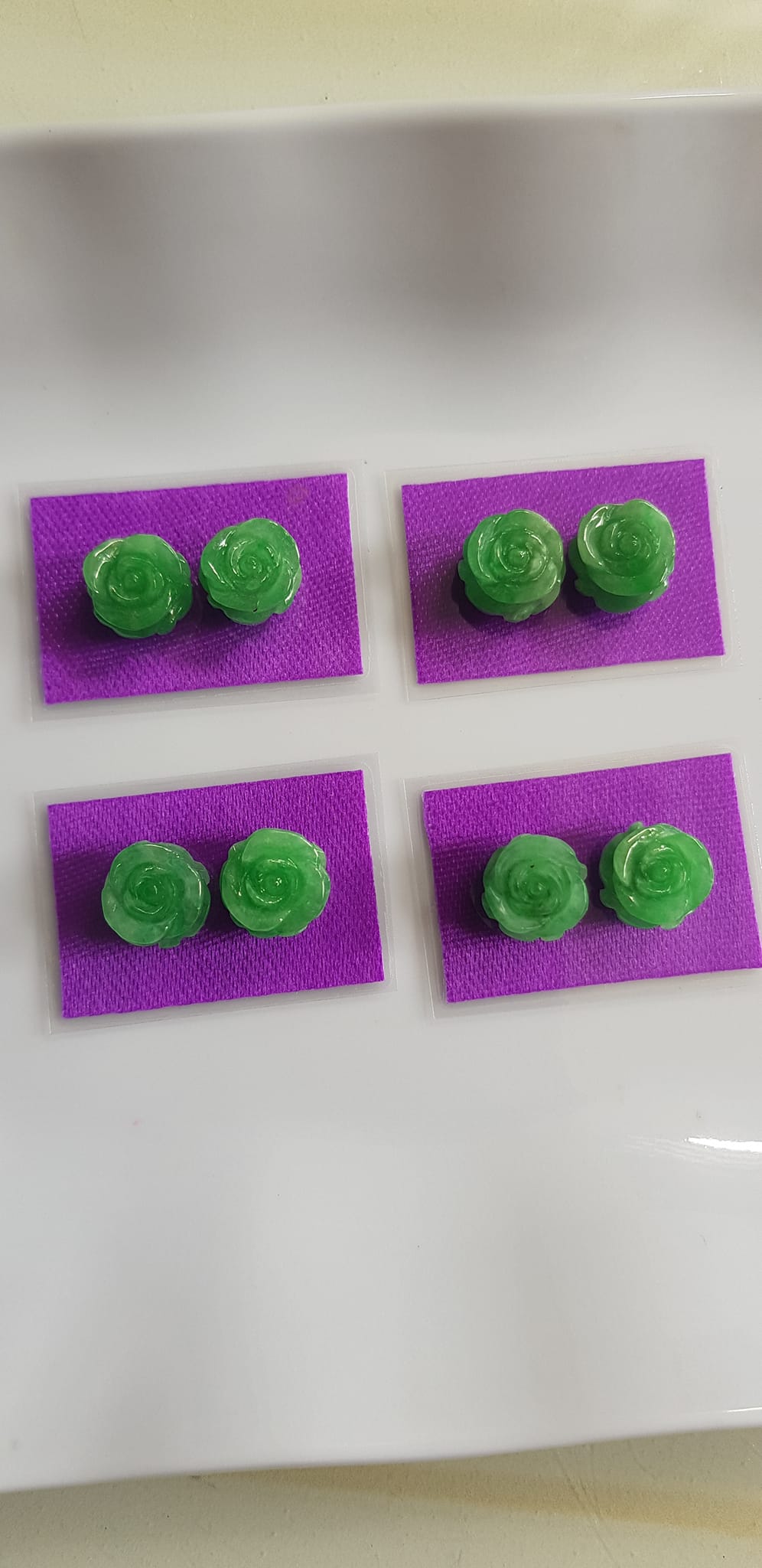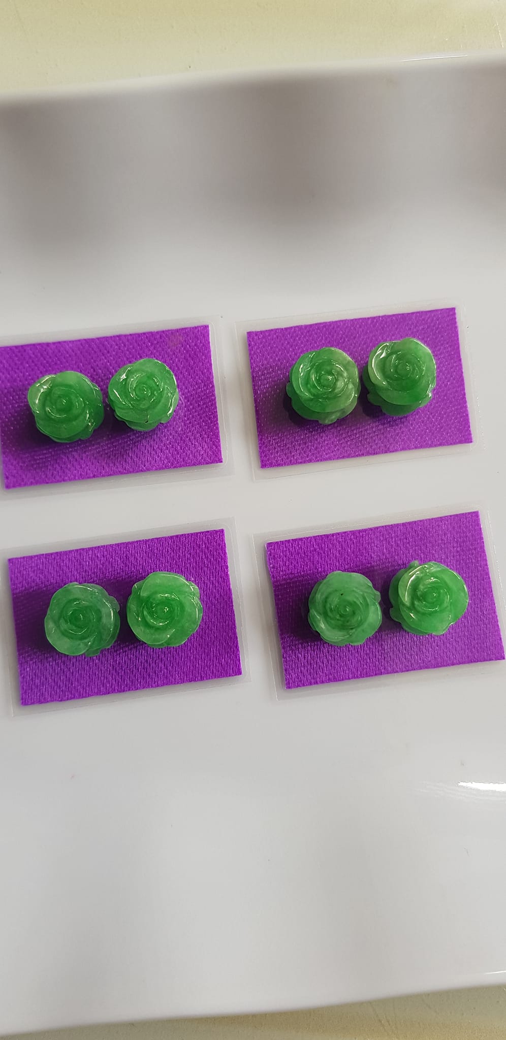 Đôi bông tai mới bông hồng nổi cao sịn đẹp xanh Ngọc tươi size đk 9,5mm x Cao 5mm Chất liệu đá ngọc cẩm thạch tự nhiên xanh ngọc tươi đều sịn bóng mượt đẹp