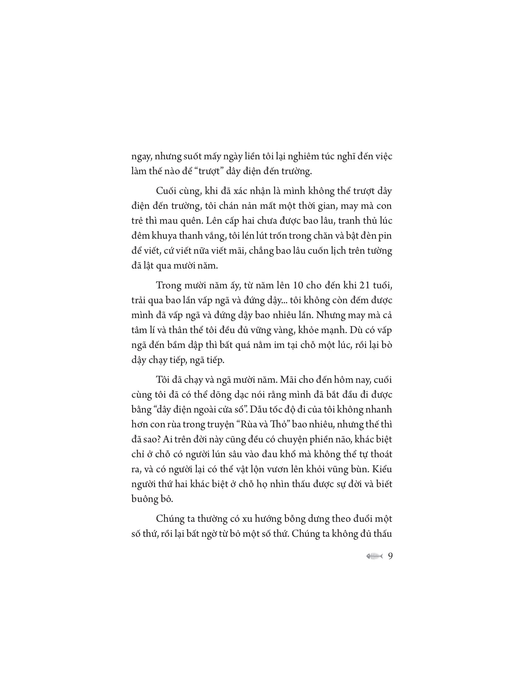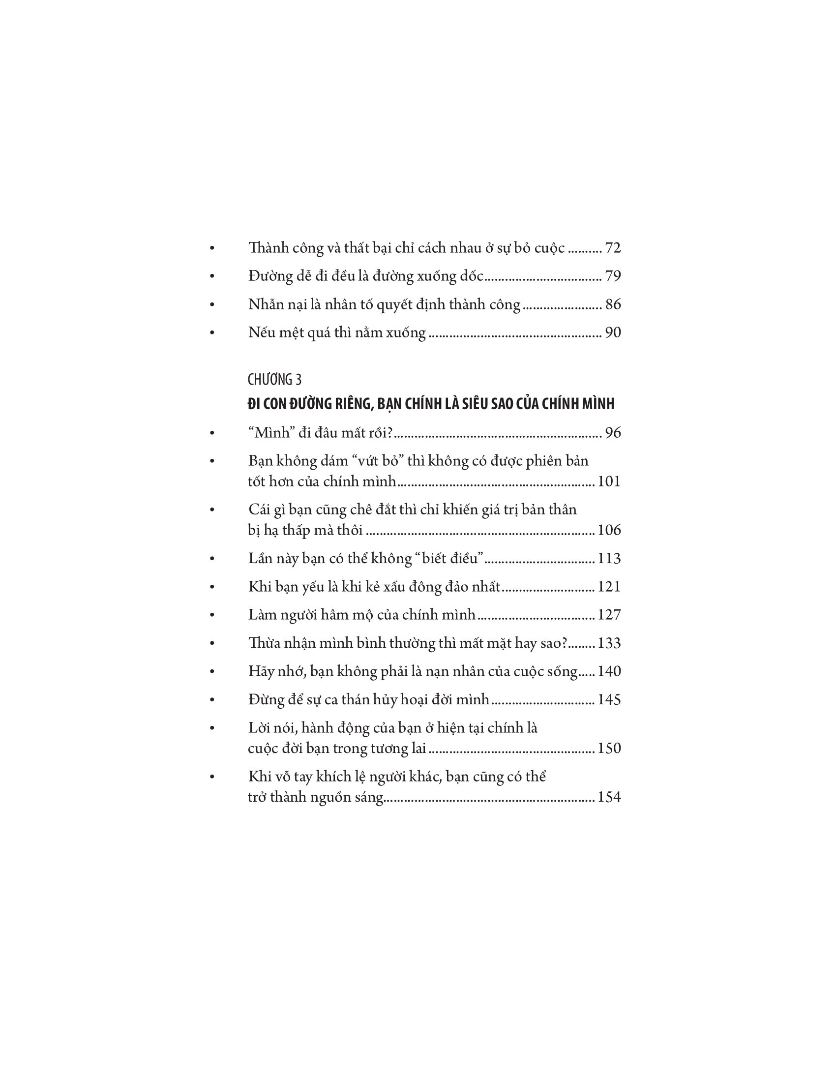 Chúng ta thường có xu hướng bỗng dưng theo đuổi một số thứ, rồi lại bất ngờ từ bỏ một số thứ. Chúng ta không đủ thấu hiểu bản thân và dễ bị cuốn theo số đông như một thói quen. Có lẽ đây chính là căn nguyên của mọi phiền não. Kinh nghiệm dành cho bạn là: Nhảy ra khỏi mục tiêu bạn muốn theo đuổi và nhìn rõ vị trí thực sự của nó trong thế giới này. Chỉ có như vậy, bạn mới không bị cuốn theo bất cứ ai hay sự vật nào, không vì có được mà vui quên trời đất, cũng không vì mất đi mà đau khổ đến tột cùng.