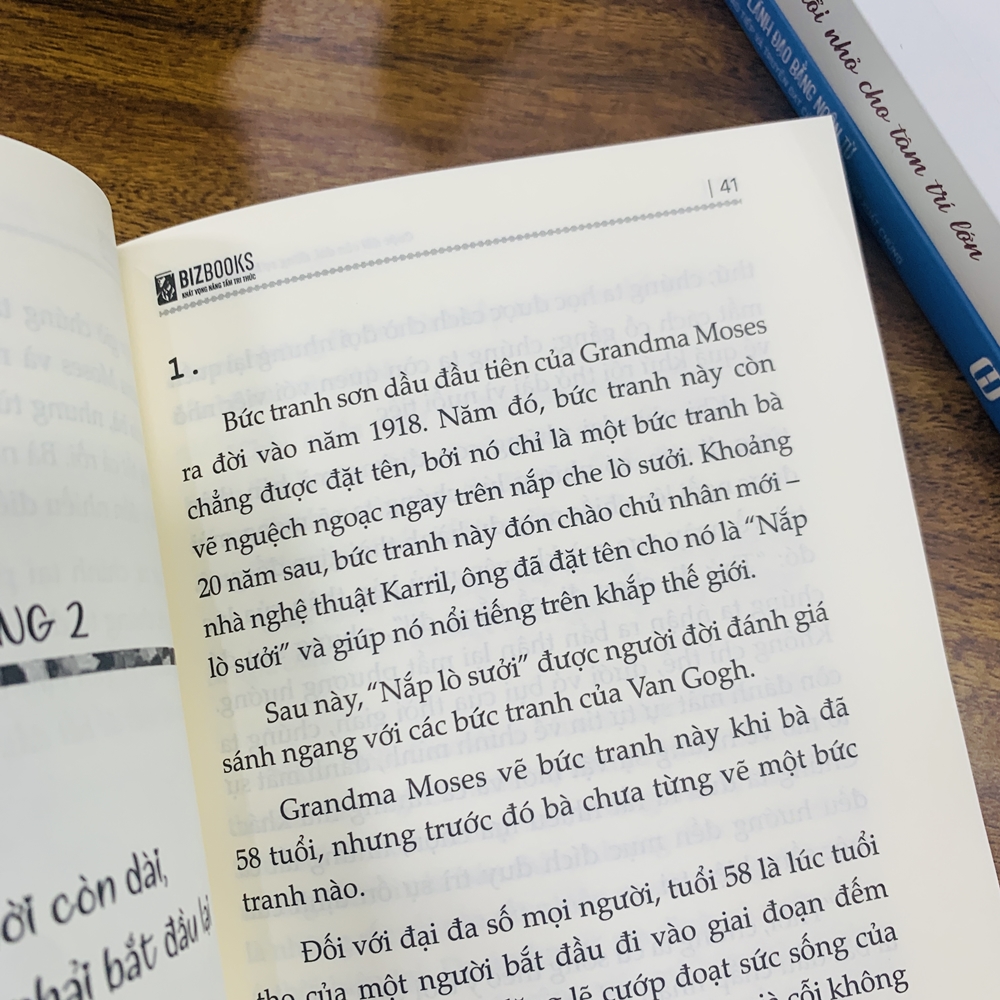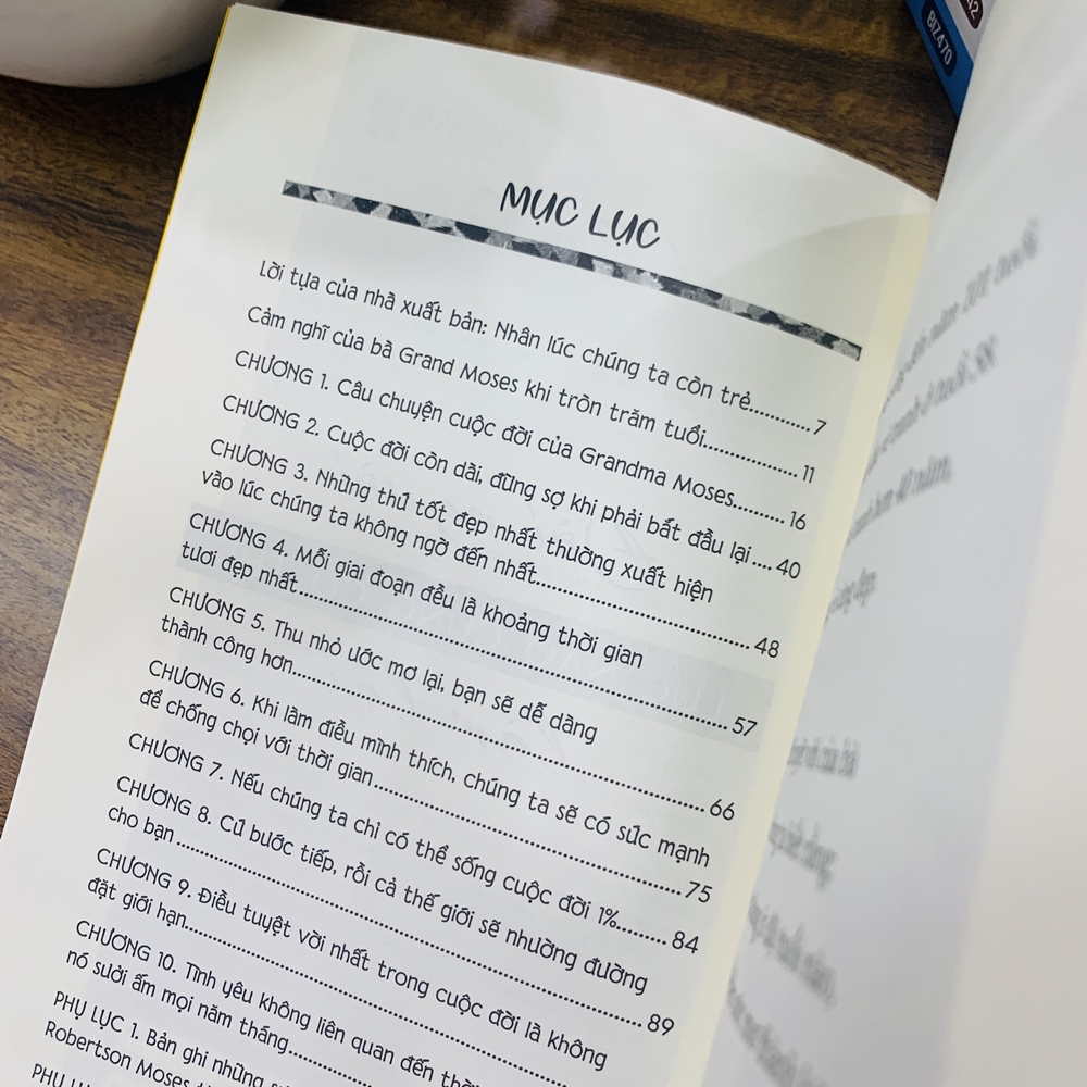 Grandma Moses là nhà nghệ thuật dân gian có sức ảnh hưởng lớn nhất, kiệt xuất nhất của thế giới, đại diện cho những người có tài nhưng thành đạt muộn. Năm 58 tuổi, bà mới cầm cây bút vẽ. Năm 80 tuổi, bà bắt đầu nổi danh tại Mỹ. Năm 101 tuổi, bà dùng cả cuộc đời dài một thế kỷ để nói với chúng ta: Đời người lúc nào cũng có thể làm lại. Hãy làm chuyện bạn muốn làm nhất, đó mới là thiên phủ thực sự của bạn. Cuốn sách được in ấn đặc sắc, lựa chọn các tác phẩm nổi bật của bà Grandma Moses - từ bức tranh đầu tay năm bà 58 tuổi, cho đến tác phẩm cuối cùng năm bà 101 tuổi. Mỗi một bức tranh đều có lời giải thích chuẩn xác và chi tiết, bao gồm kích cỡ, thời gian sáng tác và câu chuyện cảm động phía sau. Sự kết hợp của hình ảnh và câu chữ khiến người ta như được chìm vào khung cảnh thực, trở lại khoảng thời gian xưa ấm áp, tĩnh tại, hạnh phúc, thư thái, bình yên của Grandma Moses. Đây thực sự là một tác phẩm chữa lành tâm hồn.