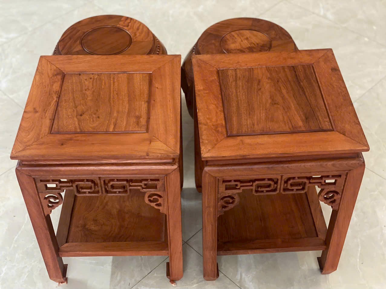Cặp bàn thờ gỗ hương đá lên màu giữ vân tự nhiên #dogoquoctrung #angiantho #banthogiatien